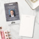 Ein modernes berufliches Mitarbeiterteam-Abzeichen für Ihr Kleinunternehmen oder Ihre Unternehmen. Der graue Kornhintergrund verleiht diesem einen einzigartigen Look. Fügen Sie dem Mitarbeiter Foto und Ihr eigenes Logo hinzu. Anspruchsvolle Suche nach erstklassigem Branding.