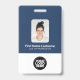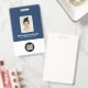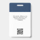 Personalisieren Sie dieses Abzeichen mit dem Namen Ihrer Mitarbeiter einfach mit Foto, Qr scannen (immer lesbar, es funktioniert!) und dem Firmenlogo. Ein einfaches Business-Design in marineblau-weißer Farbe, das in Vorder- und Rückengrößen vollständig anpassbar ist, serifenlose, einfache und moderne Schriftart und ein berufliches und klares Aussehen. Erhältlich mit Lanyard, Metallklammer oder mit Retraktikett. Keine Mindestbestellung.
