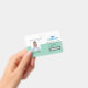 Fügen Sie die Details Ihrer Mitarbeiter auf diesen Abzeichen des medizinischen Personals mit ihrem Foto und Namen hinzu. Es stehen auch Felder zur Eingabe des Namens Ihres Krankenhauses oder Ihrer Gesundheitseinrichtung, ihres Titels und ihrer Abkürzung, der Mitarbeiternummer zur Verfügung. Fügen Sie Ihr Logo und den Titel oder die Rolle des Mitarbeiters in fett gedruckten Texten hinzu, damit Sie sich leicht identifizieren können. Passen Sie bei Bedarf einen Barcode auf der Rückseite an, zusammen mit Informationen zur Rücksendeadresse einschließlich der Telefonnummer Ihres Unternehmens