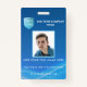 Foto-ID-Abzeichen für vertikale Mitarbeiter. Design mit blauem Hintergrund mit Wellenlichtdesign. Fügen Sie einfach Ihr eigenes Firmenlogo mit unserem Template-Bild hinzu. Id mit Foto, Name, Firmenname und ID-Nummer oder anderen Informationen, die Sie möchten. Zurück mit Informationsbereich für den Fall, dass Abzeichen verloren geht. Auch in horizontaler Darstellung erhältlich. An alle, die in den Zeilen arbeiten, DANKE IHNEN FÜR IHREN PHANTASTISCHEN SERVICE!