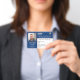 ID Identification Card Bar Code Foto Abzeichen für Ihr Unternehmen, Ihr Unternehmen oder Ihr Unternehmen für Ihre Mitarbeiter. Ersetzen Sie Informationen durch Ihre und schreiben Sie Ihre Philosophie auf der Rückseite des Abzeichens. Jeder Mitarbeiter sollte einen haben, um sich mit seinen Kunden und Kunden zu identifizieren.