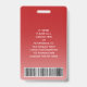 Repräsentieren Sie Ihr Unternehmen stilvoll, indem Sie den Mitarbeitern moderne und berufliche Identifizierungssysteme anbieten. Das Logo, das Foto, der Bar und alle Formulierungen auf dieser Vorlage sind einfach zu verändern. Das rot-weiße Design zeichnet sich durch einen ombre Farbverlauf mit einem eleganten Bogen, Ihr Firmenlogo, ein quadratisches Bild, Mitarbeitername und Titel, und UPC / Strichcode auf der Rückseite aus. Es bietet die Organisation und Sicherheit für die Mitarbeiter des Unternehmens und präsentiert das Corporate Branding mit einem stilvollen klassischen Aussehen.