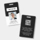 Minimal und modern berufliches Foto-ID-Abzeichen für Unternehmen/Geschäftsangestellte in einem klassischen Schwarz-Weiß-Design. Passen Sie das Firmenlogo und das Foto Ihrer Mitarbeiter an, ändern Sie die Hintergrundfarbe oder verließ wie hier gezeigt. Fügen Sie Ihre URL für den QR-Code auf der Rückseite hinzu oder entfernen Sie, falls nicht erforderlich. Es gibt ein Textfeld, um weitere Informationen auf der Rückseite hinzuzufügen. Bitte stöbern Sie in anderen Design-Abzeichen für Mitarbeiter/Unternehmen in der Abzeichen-Sammlung für das Logo des Employee ID Custom Foto.