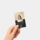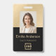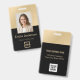Mit diesem eleganten Mitarbeiter ID Abzeichen machen Sie einen beruflichen und stilvollen Eindruck. Dieses Abzeichen mit einem modernen Design mit klaren Linien und vergoldeten Metalldetails ist optisch ansprechend und leicht lesbar. Passen Sie das Abzeichen mit Namen, Foto, Jobtitel und zusätzlichen Informationen auf der Rückseite an, um ein personalisiertes und berufliches Aussehen zu schaffen. Dieses Abzeichen eignet sich perfekt für Unternehmen jeder Größe und kann in verschiedenen Umgebungen eingesetzt werden.