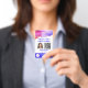 Editieren Sie diese Vorlage einfach, um Ihr eigenes ID-Foto, Impfstoff, Barcode oder QR-Code und persönliche Daten hochzuladen. Ideal für Pflegekräfte, Pflegekräfte oder Selbstständige in der Zuhause. Plus "freundlich zurückgeben" Informationen auf der Rückseite. Einzigartige abstrakte Kunst mit Aquarelltönen in Rosa, lila und Gold. Work Foto ID QR Code Rosa Lila Abzeichen.
