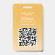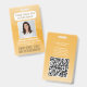 Repräsentieren Sie Ihr Unternehmen stilvoll, indem Sie den Mitarbeitern moderne und berufliche Identifizierungs-Foto-Abzeichen liefern. Das Logo, das Foto, der QR-Code und alle Formulierungen auf dieser Vorlage sind einfach zu verändern. Um Ihren eigenen QR-Code mit dem Generator zu erstellen, geben Sie einfach die URL der Website in die Vorlage ein. Das Design verfügt auch über einen goldgelben Ober-Farbverlauf mit einzigartigen gebogenen Bögen, Ihrem Firmenlogo, einem quadratischen Bild und Mitarbeiternamen und Titel. Es eignet sich als Marketing-Werbemittel oder als Zugangskarte für eine Veranstaltung, wie z.B. eine Konferenz, ein Konzert, ein Festival oder ein Vip-Party. Es bietet die Organisation und Sicherheit für die Mitarbeiter des Unternehmens und präsentiert das Corporate Branding mit elegantem und klassischem Erscheinungsbild.
