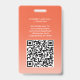 Repräsentieren Sie Ihr Unternehmen stilvoll, indem Sie den Mitarbeitern moderne und berufliche Identifizierungs-Foto-Abzeichen liefern. Das Logo, das Foto, der QR-Code und alle Formulierungen auf dieser Vorlage sind einfach zu verändern. Um Ihren eigenen QR-Code mit dem Generator zu erstellen, geben Sie einfach die URL der Website in die Vorlage ein. Das Design verfügt auch über einen orangefarbenen Ober-Farbverlauf mit einzigartigen gebogenen Bögen, Ihrem Firmenlogo, einem quadratischen Bild und Mitarbeiternamen und Titel. Es eignet sich als Marketing-Werbemittel oder als Zugangskarte für eine Veranstaltung, wie z.B. eine Konferenz, ein Konzert, ein Festival oder ein Vip-Party. Es bietet die Organisation und Sicherheit für die Mitarbeiter des Unternehmens und präsentiert das Corporate Branding mit elegantem und klassischem Erscheinungsbild.