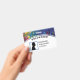 Modernes, stilvolles VOLUNTEER Foto ID Abzeichen, das Fotovorlage zeigt, die KUNSTBAR ist, sodass Sie durch das gleiche Foto oder Logo ersetzen können. Die kurvenförmige Überschrift, der Name des Platzhalters und der Unternehmenstext sind für Sie ebenfalls anpassbar, um Ihre eigenen Daten hinzuzufügen. Auf der Rückseite befindet sich ein optionaler Text. Die Hintergrundfarbe und der Rahmen können durch Klicken auf Weitere Einstellungen geändert werden.