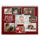 Foto Kalender 2026 mit 12 monatlichen Fotos. Auf jeder Seite dieses Familienkalenders ist ein Foto - geben Sie Ihre Lieblings-Fotos in die Vorlagen für jeden Monat. Das Cover enthält Ihren Familiennamen, die Jahreszahl und eine Foto-Collage auf rotem Hintergrund. Machen Sie Ihren eigenen Familienkalender. Der Kalender wird ein wunderbares Geschenk und ein süßes Foto Familie Sake machen.