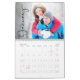 Moderner und trendiger Foto Kalender mit handgeschriebener schwarzer Typografie. Passen Sie Ihre Lieblingsbilder und Ihren eigenen Text an. Wenn Sie die Beispielbilder für jeden Monat ersetzen, erscheint sie automatisch in einem Raster auf der Rückseite. Perfektes Geschenk für Ihre Familienmitglieder, um das neue Jahr zu beginnen.