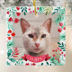 In diesem Design können Sie ein Foto oder Haustier jeder Art hinzufügen. Das Design verfügt über einen Rahmen von handgemalten Aquarellfloralen in Rot und Grüntöne und ein rotes Banner, wo Sie den Namen Ihres Haustieres hinzufügen können. Sehen Sie sich die gesamte passende Auflistung an.