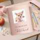 Eine gürtelige Rose goldener Farbverlauf Hintergrund. Personalisieren und fügen Sie Ihr eigenes Foto Ihres Hundes oder Hauses. Fügen Sie Ihren Namen und einen Titel hinzu. Der Titel wird mit einem modernen handgeschriebenen Stilskript geschrieben. Schwarze Buchstaben. Ein Notizbuch zum Zeichnen Ihres Hundes, Notizen oder zur Hausaufgaben in der Schule.