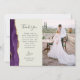 Schicken Sie Ihrer Familie und Ihren Freunden einen besonderen Hochzeitsdanken mit diesen maßgeschneiderten Fotokarten. Auf der links, die Worte "danke" erscheinen in eleganter Holzkohle graue Handschrift Schrift Typografie auf einem Elfenbeinhintergrund über eine kurze, bearbeitbare Botschaft des Dankes an Ihre Hochzeitsgäste in Copperplate Schriftart, mit Ihren Namen unten. Ein lila Aquarellstreifen mit vergoldetem Imitat-Glitzer schmückt den links Rand. Die Rückseite bietet Platz für ein zweites, horizontales Foto.