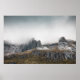 Landschaftliches Foto von Felsgebirgen in den Wolken an der Lofoten-Küste in Nordnorwegen, Skandinavien. Foto: Sebastian Worm