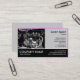 Eine Visitenkartenvorlage mit einer Schwarz-weißen Fußleiste mit einem oberen Bereich, der mit einem Foto und einem Textfenster maskiert ist. Foto oder Kunstwerk Bild auf dem verlassen (das auch durch Ihr eigenes Foto ersetzt werden kann) mit einem Panel für Namen und Details auf der rechten Seite. Platz für den Firmennamen am links Fuß mit Telefonnummer, Web und E-Mail-Kontaktdaten auf dem verlassen. Kann auch für andere Zwecke angepasst werden. Hinweis: Der Foto-Bereich ist maskiert, wenn Sie das Bild ersetzen, müssen Sie möglicherweise die Größe Ihres Fotos anpassen.