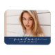 Schicken Sie Ihren Lieben einen Foto Magneten, um Ihren Abschluss zu feiern. Der Abschluss Foto Magnet verfügt über einen stilvollen Skript-Schriftart, einen Marinehintergrund und Platzhalter für ein Bild und einen benutzerdefinierten Text.
