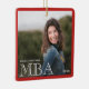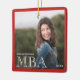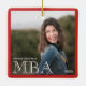 Ein Sake-Foto-Ornament für einen MBA-Absolvent mit weißen und roten Worten. Es zeigt den Grad, den Namen und das Jahr. Das Foto ist quadratisch (andere Formen des Fotos müssen unter Umständen angepasst werden). Passen Sie dieses Ornament an, fügen Sie es Ihrem Warenkorb hinzu und feiern Sie dieses große Ereignis für die nächsten Jahre. <i>Fotografie © Storytree Studios, Stanford, CA</i>