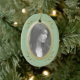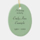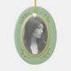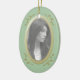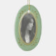 Weich grün mit Gold Blätter Oval Foto Ornament Erschaffen Sie eine gepflegte Erinnerung an jemanden Special mit einem personalisierbaren Foto Ornament. Dieses Ornament wurde speziell für Erinnerungen und Gedenkstätten konzipiert und hat einen weichen grünen Hintergrund mit einem goldfarbenen Foto-Rahmen, zu dem Sie ein Foto Ihrer Lieben hinzufügen können. Ein goldenes Blattdetails umgibt den Rahmen. Auf der Rückseite ist der Text 'In lieve memory' und anpassbare Textfelder, um einen Namen und Daten hinzuzufügen. Eine schöne Art, sich zu erinnern und ein Leben zu feiern. Erhältlich in einer Reihe von weichen und klassischen Tönen für männliche oder weibliche Gedenkstätten.