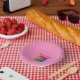 Laden Sie Ihr Foto oder Bild, Design, Bild, Firmenlogo als Vorlage runder rosafarbener Papiertücher hoch.