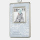 Das Weihnachtsdekor des Blauen und Weißen Schnees Fotos - ein personalisierter und sentimentaler Sake zum Gedenken an besondere Momente während der Ferienzeit. Das Ornament ist mit einem blassblauen Hintergrund mit schneebedeckten Ästen geschmückt und schafft eine winterliche und bezaubernde Szene, die den Zauber von Weihnachten weckt. Was diesen Ornament wirklich besonders macht, ist der separate Bereich, der für ein individualisierbares Foto entworfen wurde. Fügen Sie ein hochgehaltenes Bild hinzu, um einen Augenblick in der Zeit zu erfassen und ein einzigartiges und herzliches Ornament zu schaffen, das eine Geschichte erzählt. Das anpassbare Feature ermöglicht die Personalisierung, sei es zum Gedenken an das erste Weihnachtsfest eines Babys, an eine Ansammlung der Familie oder an einen besondere Anlass. Dieses Metall-Ornament, das mit Qualität und Liebe zum Detail gestaltet wurde, ist nicht nur eine schöne Ergänzung zu Ihrer Feriendekoration, sondern auch ein bedeutendes Geschenk für Freunde und Familie. Feiern Sie mit dem Weihnachtsgeschmack der blauen und weißen Schneebründe im Foto die Magie der Saison. Bestellen Sie jetzt und schmücken Sie Ihren Baum mit einer personalisierten Touch, die das Wesen Ihrer beliebtesten Ferien-Erinnerungen einfängt.