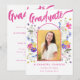 Foto mit Blumenabschluss - Pink-Script-Graduierung Einladung