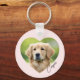 Rosa oder benutzerdefinierter Farbschlüsselring, der Ihr Foto in einem Herz mit dem Namen in einem handgeschriebenen Stil Skript-Schriftart zeigt. Doppelseitiger Druck.
