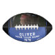 Custom Blue Player Name Name Team Foto Football. Der Text ist schwarz auf blauem Hintergrund mit schwarzen Oberseiten. Sie können jeden Text auf dem Fußball ändern oder löschen. Ein perfektes Geschenk für einen Fußballspieler, Teamkollegen, Trainer, Freunde und Familie. Tolle Erinnerung an Ihren Lieblingssport.