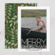 Vertikales Foto - Das hintere Design enthält ein botanisches Weihnachtsmuster in fröhlichen Rottönen und Grüntönen für einen Blumenlook. Verwenden Sie ein Bild mit dem Thema vorzugsweise in der Mitte oder Richtung oben. Ein dunkleres Foto funktioniert besser mit diesem Overlay des weißen Typs. Machen Sie einen einzigartigen und trendigen fröhlichen Weihnachtsgruß mit einem trendigen und fröhlichen Muster auf der Rückseite.