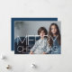 Grosses, horizontales Foto vorne - Die Rückseite ist mit einem massiven Marineblau versehen. Sie können diese Farbe im erweiterten Designbereich ändern. Verwenden Sie ein Bild mit dem Thema vorzugsweise in der Mitte oder Richtung oben. Ein dunkleres Foto funktioniert besser mit diesem Overlay des weißen Typs. Machen Sie einen einzigartigen und trendigen fröhlichen Weihnachtsgrüßen.