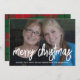 Die Rückseite ist mit einem karierten Weihnachtsmuster in fröhlichem Rot und Grün für einen klassischen Look ausgestattet. Verwenden Sie ein Bild mit dem Thema vorzugsweise in der Mitte oder Richtung oben. Ein dunkleres Foto funktioniert besser mit diesem Overlay des weißen Typs. Machen Sie einen einzigartigen und trendigen fröhlichen Weihnachtsgruß mit einem trendigen und fröhlichen Muster auf der Rückseite.