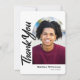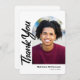 Vergewissern Sie sich, dass Ihr Lieblingsgrad allen, die ihren Meilenstein-Event unterstützt haben, eine Wertschätzung entgegenbringt! Versenden Sie diese atemberaubende, einfache, moderne, personalisierte Foto-Wohnung Dankeschön-Karte. Auf der Vorderseite, fett, grafisch, schwarz handschriftlich Skriptkalligrafie, sans serif typografie und ein Foto Ihrer Wahl in einer Bogenform Overlay ein minimaler weißer Hintergrund. Fügen Sie das Foto Ihrer Wahl hinzu und personalisieren Sie den benutzerdefinierten Text mit dem Namen Ihres Abschlusses und das Klassenjahr. Fügen Sie eine personalisierte Notiz auf der Rückseite unter dem Symbol für die schwarze Mütze hinzu. In dieser trendigen und stilvollen Kollektion sind auch passende Einladungen, Aufkleber, Handfächer, Gartenschilder und andere Abschluss-Goodies erhältlich. Garantiert eine stilvolle Touch zu ihrer Korrespondenz hinzufügen! Ersetzen Sie einfach das Foto durch eines Ihrer eigenen und geben Sie den Namen und das Jahr Ihres Abschlusses ein, und Sie können diesen Abschluss ganz einfach personalisieren dank Ihrer Karte. Fügen Sie eine personalisierte Notiz auf der Rückseite hinzu. Bitte schicken Sie mir eine Nachricht mit Fragen oder Wünschen.