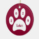 Hier ist ein niedliches Sake-Ornament mit dem Foto Ihres wertvollen Welpenhundes auf einer Seite. Die andere Seite hat einen weißen Pfotendruck mit dem Namen des Tieres und das aktuelle Jahr auf rotem Hintergrund.