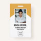 Erstellen Sie ein individuelles Mitarbeiter-ID-Abzeichen mit einem beruflichen Foto, Ihrem Firmenlogo und drei personalisierten Textzeilen. Dieses moderne vertikale Abzeichen zeichnet sich durch einen hellgelben Hintergrund aus, der Eleganz und Einfachheit verbindet - ideal für Unternehmen, Schulen, Gesundheitswesen und Unternehmen. Display wichtige Details wie Name, Jobtitel und Abteilung klar und stilvoll. Ideal für die Identifizierung von Mitarbeitern, Sicherheit am Arbeitsplatz und Markenkonsistenz. Dauerhaft, beruflich und für den Alltag konzipiert. Ideal für Personalausweis, Arbeitsplatzzugang und Markenpräsentation.