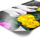 "Modell A" Pose sich die Füße über einige wunderschöne getöpfelte gelbe Blumen, um ein faszinierendes Foto zu drucken