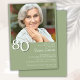 Foto Moderne minimalistisch sage grün 80. Geburtstagsfeier Einladung für eine lustige Geburtstagsparty. Das Alter kann geändert werden. Diese Einladung ist einfach und elegant, erwachsenen Meilenstein Geburtstagseinladung für Männer und Frauen. Mit dem Design-Tool kann die Farbe des grünen Vorhangs in eine beliebige Farbe geändert werden.