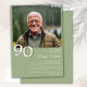 Foto Moderne minimalistische Weise grün 90. Geburtstag Einladung für eine lustige Geburtstagsparty. Das Alter kann geändert werden. Diese Einladung ist einfach und elegant, erwachsenen Meilenstein Geburtstagseinladung für Männer und Frauen. Mit dem Design-Tool kann die Farbe des grünen Vorhangs in eine beliebige Farbe geändert werden.