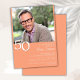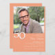 Foto moderne minimalistische Pfirsichfeier 50. Geburtstag Einladung für eine lustige Geburtstagsparty. Das Alter kann geändert werden. Diese Einladung ist einfach und elegant, erwachsenen Meilenstein Geburtstagseinladung für Männer und Frauen. Die pfirsichfarbene Hintergrundfarbe kann mit dem Designwerkzeug in eine beliebige Farbe geändert werden.