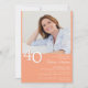 Foto moderne minimalistische peach 40. Geburtstag Party Einladung für eine lustige Geburtstagsparty. Das Alter kann geändert werden. Diese Einladung ist einfach und elegant, erwachsenen Meilenstein Geburtstagseinladung für Männer und Frauen. Die pfirsichfarbene Hintergrundfarbe kann mit dem Designwerkzeug in eine beliebige Farbe geändert werden.