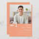 Foto moderne minimalistische Pfirsich 21. Geburtstag Party Einladung für eine lustige Geburtstagsparty. Das Alter kann geändert werden. Diese Einladung ist einfach und elegant, erwachsenen Meilenstein Geburtstagseinladung für Männer und Frauen. Die pfirsichfarbene Hintergrundfarbe kann mit dem Designwerkzeug in eine beliebige Farbe geändert werden.