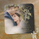 Foto Modernes Save the Date Elegantes Gold Script Rechteckiger Pappuntersetzer