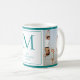 Hübsche aquamarine Foto-Monogramm-Initial-und Familienname-Tasse. Dieses Foto hat Platz für 2 Fotos. Sicher, ein unvergessliches Geschenk zu machen.