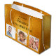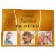 Für einen 50. Geburtstag (oder jedes Alter). Ein Imitat mit goldmetallischem Hintergrund. Personalisieren und fügen Sie 3 Ihrer eigenen Fotos, ein Datum, Name und Alter 50. Schwarzer Text. Der Name ist mit einem modernen handgeschriebenen Stilskript geschrieben.