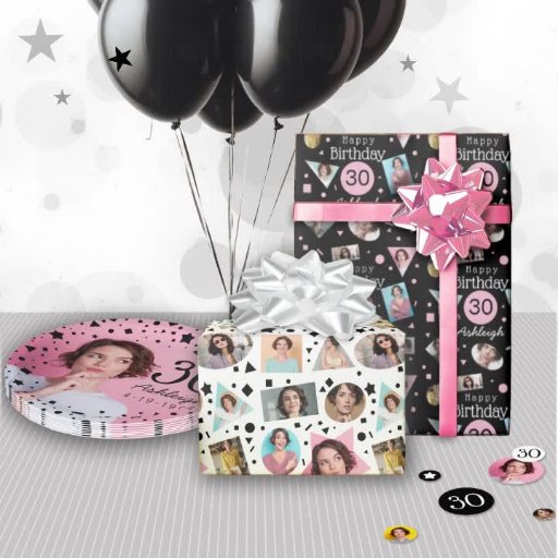 Pink Black White Confetti Photos 30th BirthdayDesignt von Mindy Pierce