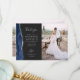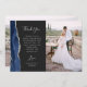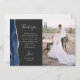 Schicken Sie Ihrer Familie und Ihren Freunden einen besonderen Hochzeitsdanken mit diesen maßgeschneiderten Fotokarten. Auf der links erscheinen die Worte "danke" in eleganter silbergrauer Schrift Schrift Typografie auf einem schwarzen Tonschiefer Hintergrund über eine kurze, bearbeitbare Botschaft des Dankes an Ihre Hochzeitsgäste in Copperplate-Schriftart, mit Ihren Namen unten. Ein marineblauer Aquarellrahmen mit Imitaten bestickt silbernen Glitzer schmückt den verlassen Rand. Die Rückseite bietet Platz für ein zweites, horizontales Foto.
