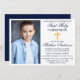 Moderne elegante Navy Blue First Heilige Kommunion Einladung mit Gold Cross und Foto.