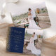 Schicken Sie Ihrer Familie und Ihren Freunden einen besonderen Hochzeitsdanken mit diesen maßgeschneiderten Fotokarten. Auf der rechten Seite erscheint ein vertikales Foto. Auf der links erscheinen die Worte "Danke" in eleganter goldfarbener Schrift Typografie auf marineblarem Hintergrund, über eine kurze, bearbeitbare Dankesbotschaft an Ihre Hochzeitsgäste im Kupferblech-Schriftart, mit Ihren Namen unten. Ein goldener Imitat Glitzer Rand schmückt den verlassen Rand. Die Rückseite bietet Platz für ein zweites, horizontales Foto.