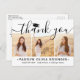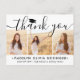 Schicken Sie uns eine stilvolle Dankeschön mit einem individuellen 3 Foto Collage Schwarz-Weiß-Abschluss danke Ihnen Postkarten. Alle Bilder und Texte sind einfach zu personalisieren. (IMAGE PLACEMENT TIP: Eine einfache Möglichkeit, ein Foto genau so zu zentrieren, wie Sie es gewollt haben, ist es, es einzuschneiden, bevor Sie es auf die Zazzle-Website hochladen.) Diese Vorlage kann mit jedem beliebigen Wortlaut Ihrer Wahl, wie z.B. zukünftige Bildungen, neue Stellenangebote oder ein beliebiges inspirierendes Angebot, angepasst werden. Wenn Sie lieber Ihre Nachricht schreiben, löschen Sie einfach den Beispieltext oder verwenden Sie den zusätzlichen Platz über der neuen Adresse und Kontaktinformationen. Das Design besticht durch eine schwarze Mörtel-Kappe, handgeschriebene Schriftzeichen-Kalligraphie, moderne minimalistische Typografie und drei Fotos Ihrer Wahl, wie Seniorenbilder oder Bilder aus der Anlaufzeremonie. Diese eleganten personalisierten Karten sind eine schicke und trendige Möglichkeit, Familie und Freunden zu danken, dass sie ihren Abschluss gemeinsam feiern. Herzlichen Glückwunsch an den Absolventen!