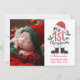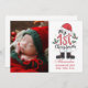 Feiern Sie das erste Weihnachtsfest Ihres Neugeborenen mit dieser süßen und festlichen Fotokarte mit spielerischen Urlaubselementen wie Stiefeln des Weihnachtsmannes, Heiligen und einem roten Hut. Dieses für stolze neue Eltern konzipierte, bezaubernde Layout verbindet das Foto Ihres Babys mit den Geburtsdetails und dem Namen und schafft so einen Sake, der das Herz über Jahre schmelzen wird. Eine charmante Wahl, um die Freude mit den Lieben in dieser Ferienzeit zu teilen.