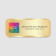 Mitarbeiter Foto oder Ihr Logo hier Imitate Gold Metallic Look Moderne elegante, einfache Design Vorlage abgerundete Ecke Rectangle traditionellen Sicherheits-Button oder Magnetic Name Tag. Perfekt für Firmenfachleute, Stylist, Direktoren, Manager, Berater, Designer, Beauty Salon Besitzer, Haar Stylists, Real Anwesen Agent, Buchhalter, Makler, Broker, Anwälte, Anwälte, Ärzte, Architekten, Ingenieure, Lehrer, Musiker, alle Berufe.