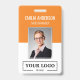 Personalisieren Sie diesen orangefarbenen, benutzerdefinierten Mitarbeiternamen und das Foto-Abzeichen einfach mit Ihrem Firmenlogo und QR-Code oder Bar-Code. Erhältlich mit verschiedenen Hintergrundfarben und Anbaugeräten. Keine Mindestbestellmenge.